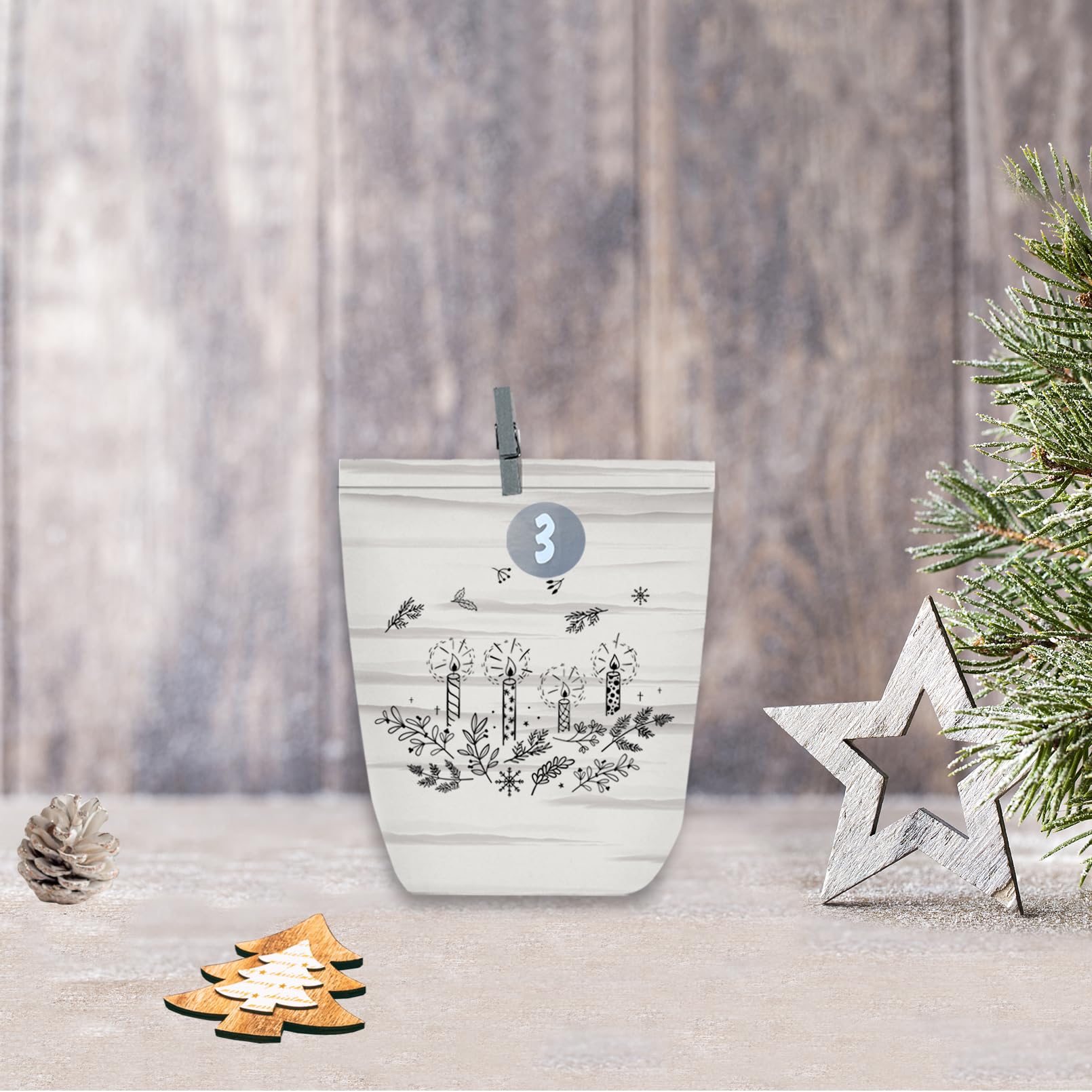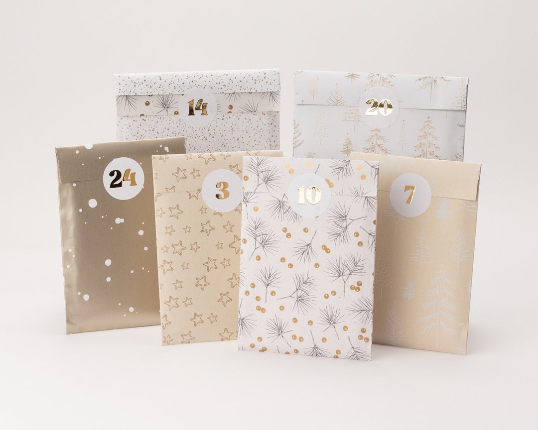Calendario De Adviento Para Rellenar 2025 - 24 Bolsas De Papel Kraft Con Números Y Pinzas