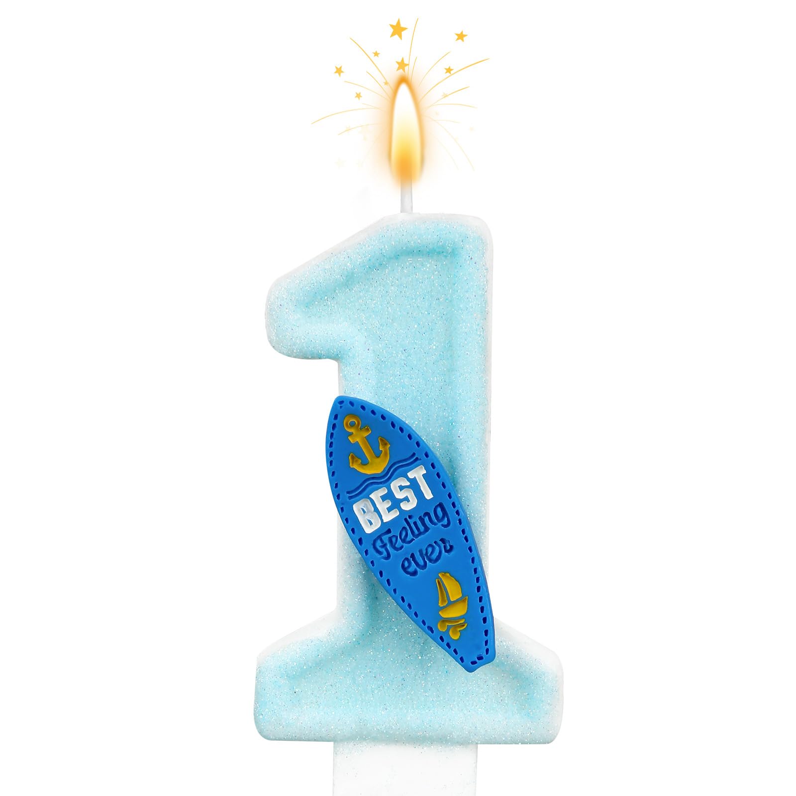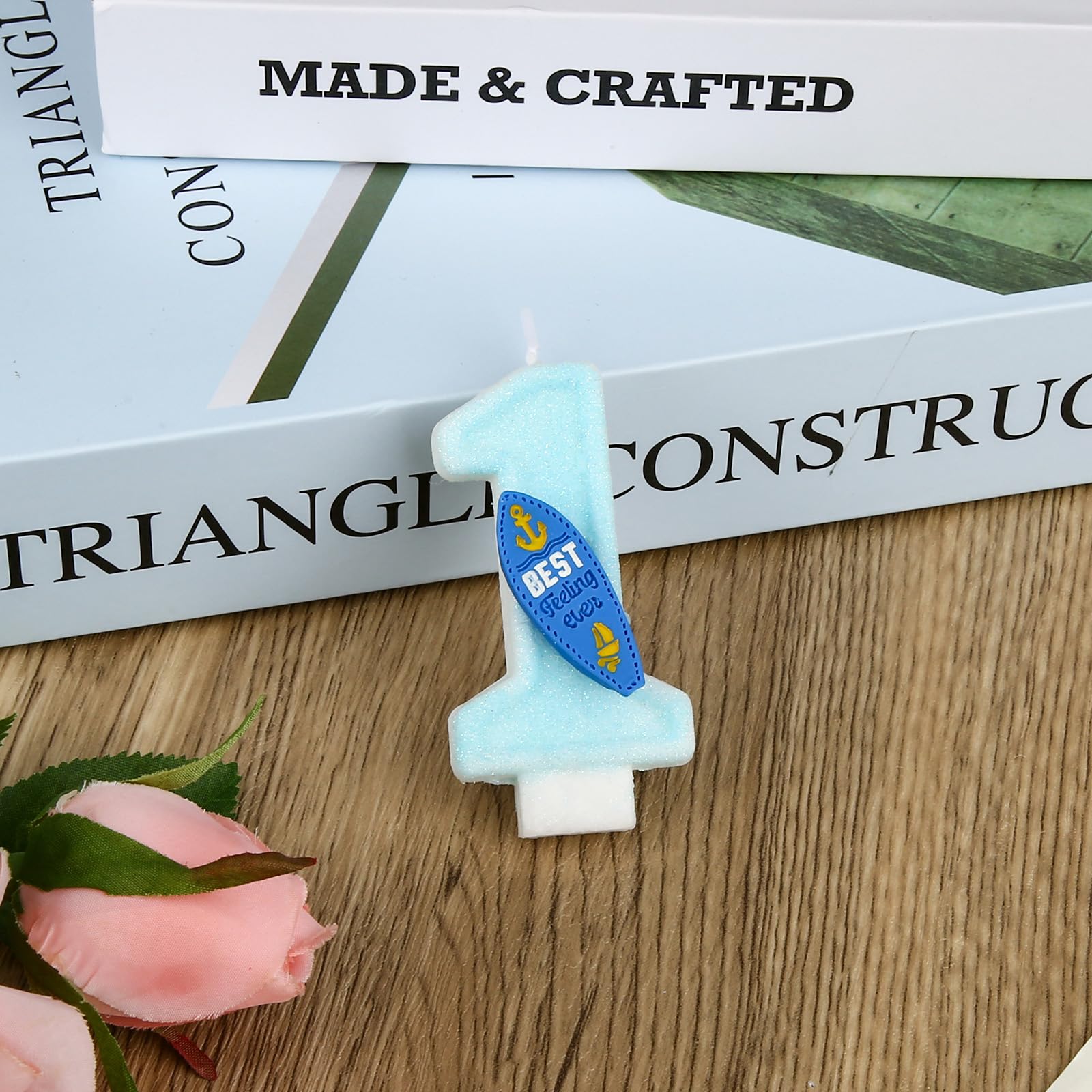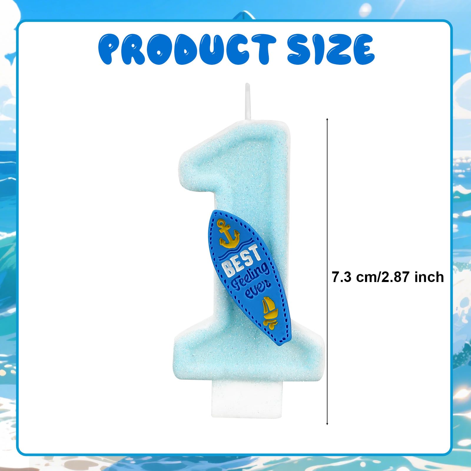 Vela De Cumpleaños Número 1 Temática Surf - Azul Con Purpurina, 7,3 Cm, Para Tarta, Primer Cumpleaños, Baby Shower