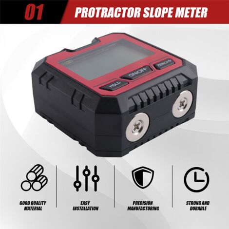 Este inclinómetro digital es una herramienta de precisión para medir ángulos en milisegundos. Tiene una base magnética que se pega a superficies metálicas, pantalla clara, precisión de ±0.2° y rango de medición de 4x90° o 2x180°. Perfecto para carpinteros (cortes de madera), mecánicos (alineación de ruedas), operarios de CNC o cualquier proyecto de bricolaje que requiera medidas exactas. Funciona con 2 pilas AAA (no incluidas), es portátil y muy fácil de usar. ¡Un imprescindible en tu caja de herramientas!
