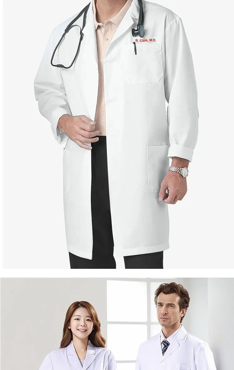 Bata De Laboratorio Unisex Talla Grande - Blanca, Manga Larga, Poliéster, Para Estudiantes, Belleza, Clínicas, Laboratorios