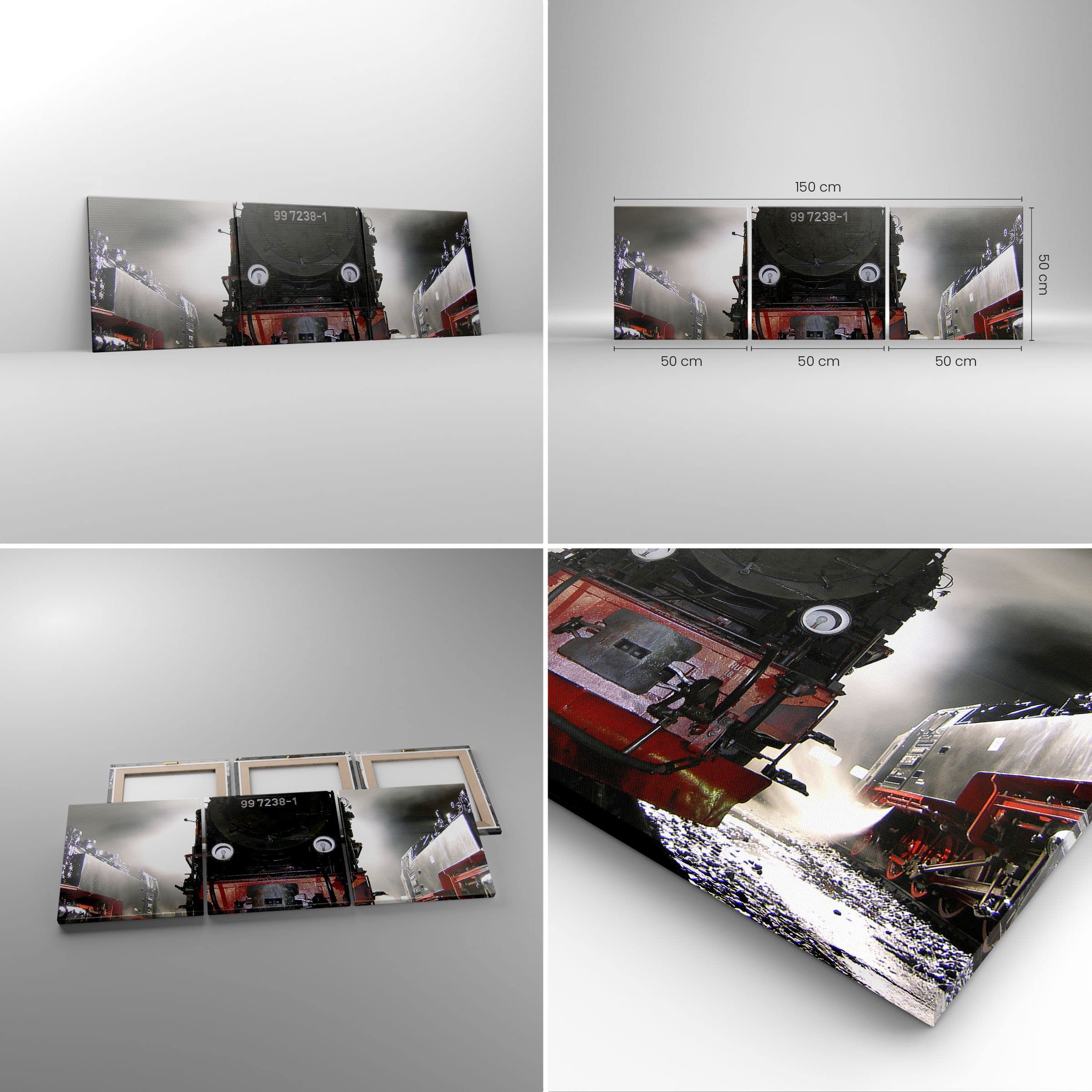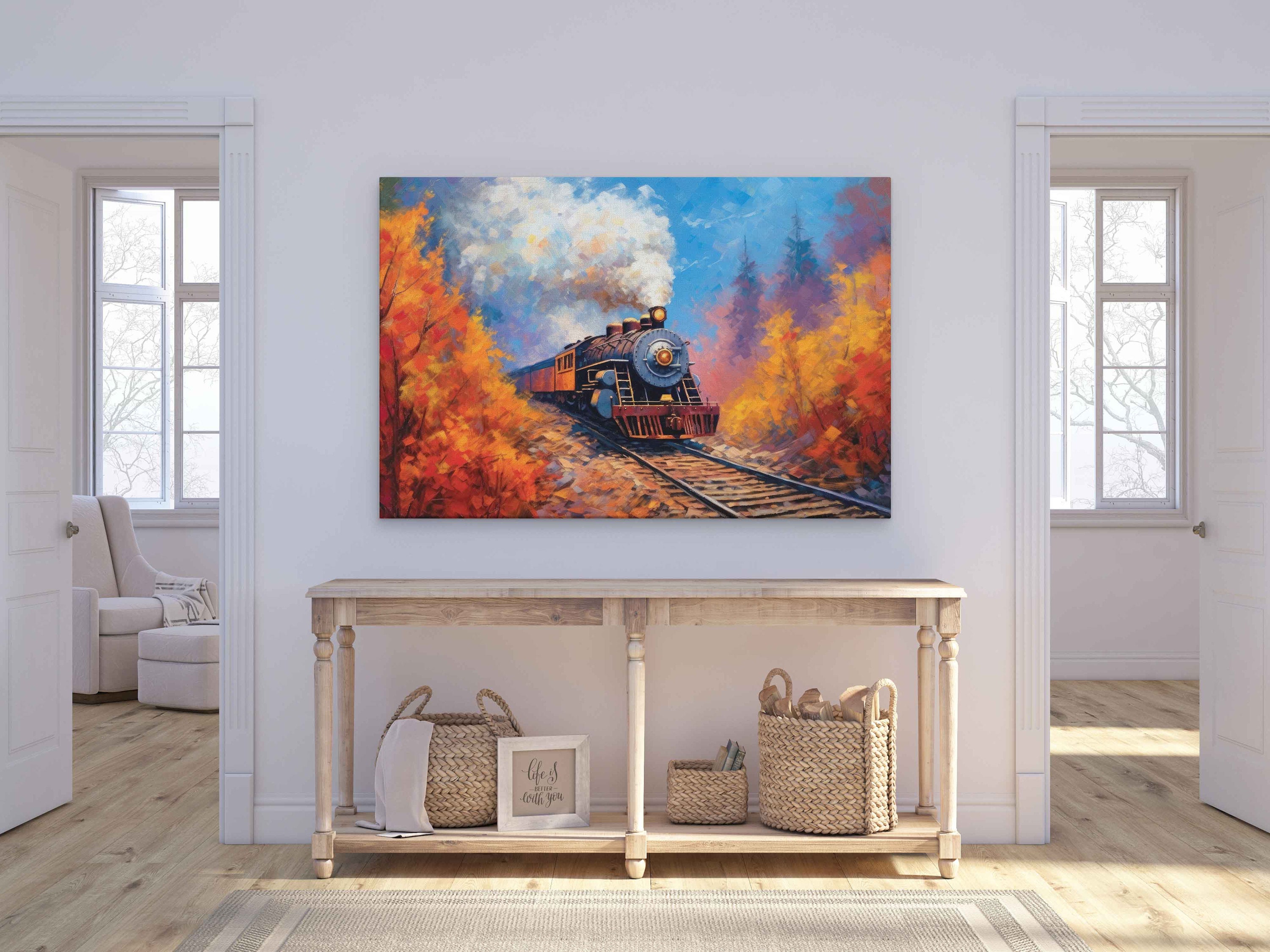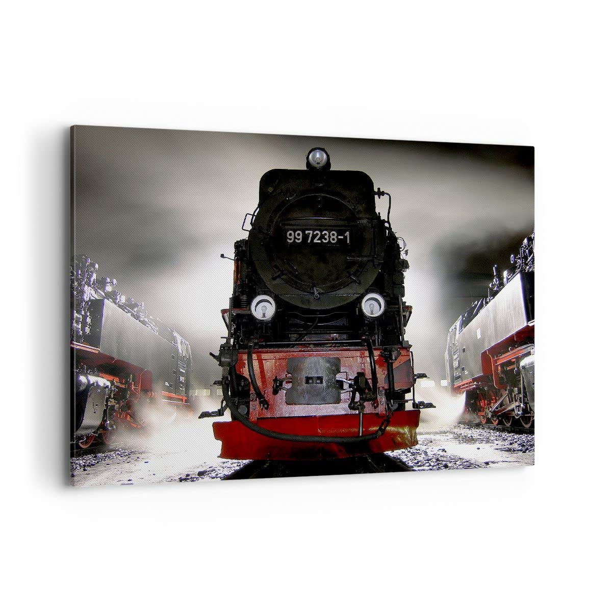 Cuadro Decorativo De Locomotora De Vapor - Lienzo 120x80 Cm, Impresión A Color, Listo Para Colgar, Decoración Moderna