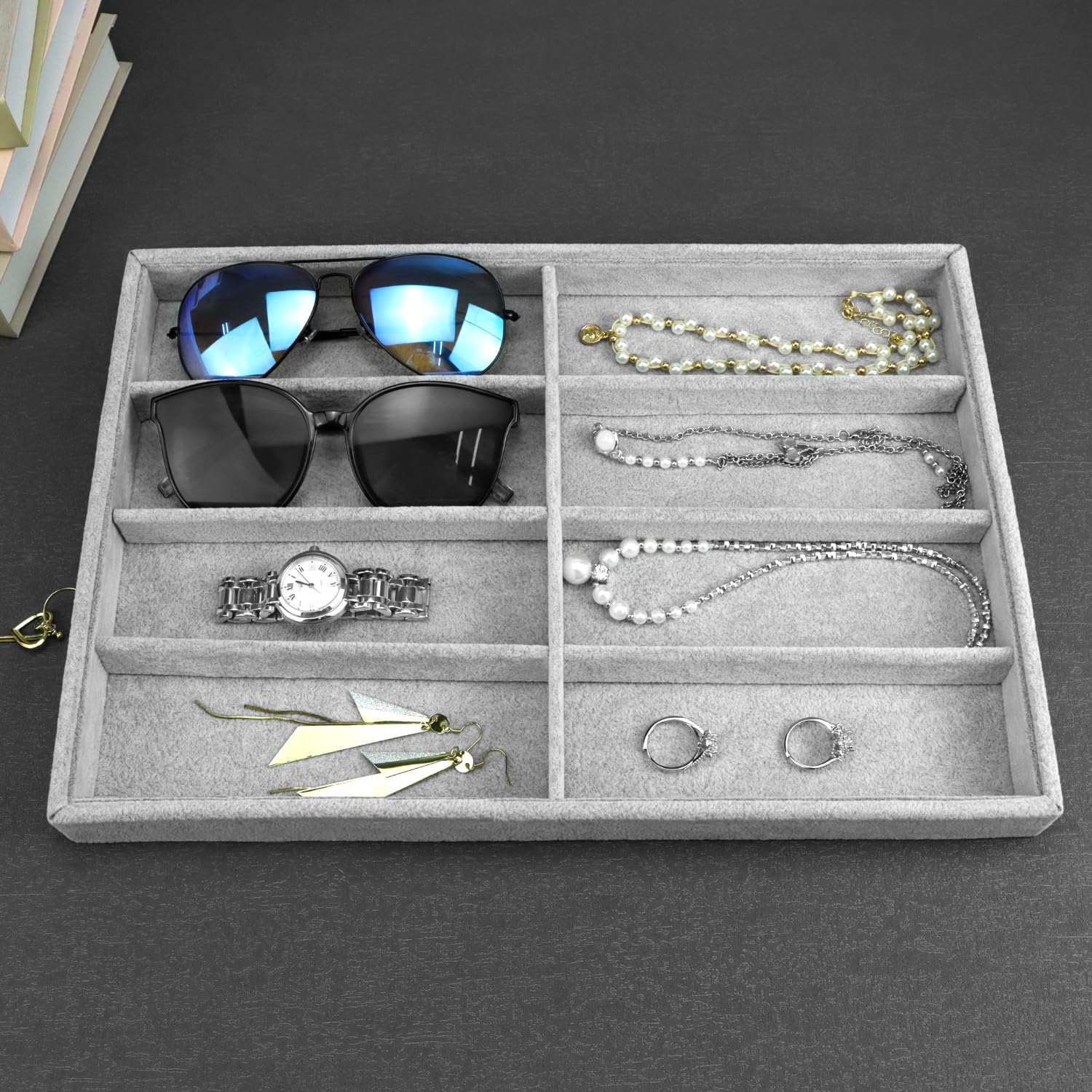 Bandeja Organizadora De Gafas De Sol Con Tapa - Terciopelo Beige, 13.8x9.6 Pulgadas, Para Joyas O Exhibición