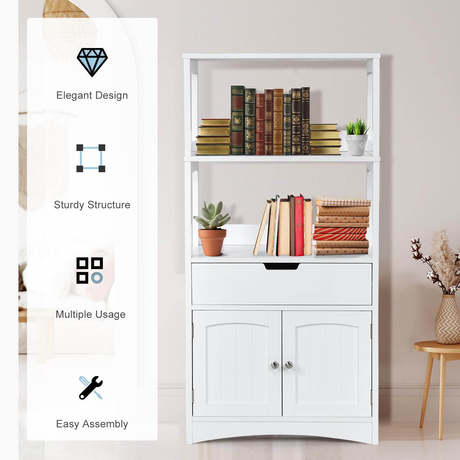 Estantería Para Libros HOMASIS Con Cajón Y 3 Compartimentos - Estante De Madera Blanco Para Salón U Oficina