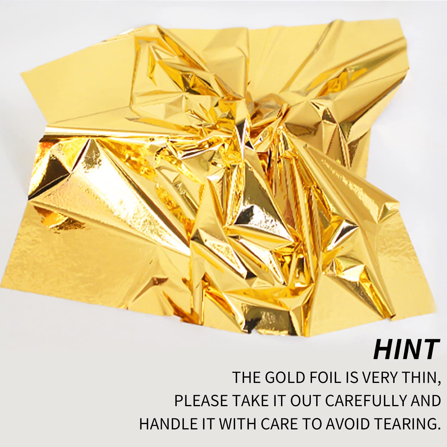 Kit Manualidades Con Papel De Aluminio Dorado - 250 Hojas + Pincel Y Pinzas, Ideal Para Decorar Tartas, Uñas O Proyectos DIY