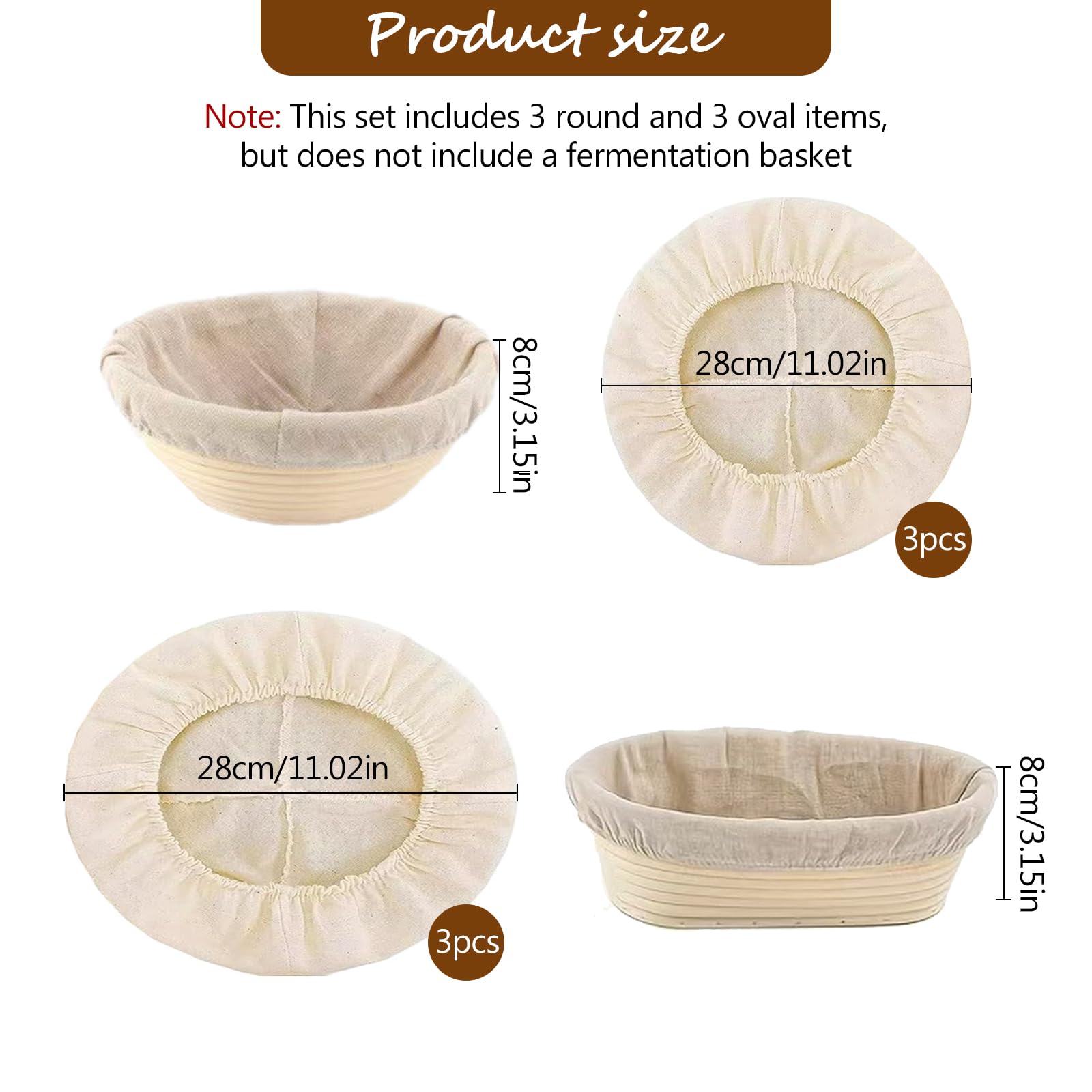 Set De 6 Fundas De Lino Para Cestas De Fermentación - 25 Cm, Ovaladas Y Redondas, Para Hacer Pan En Casa