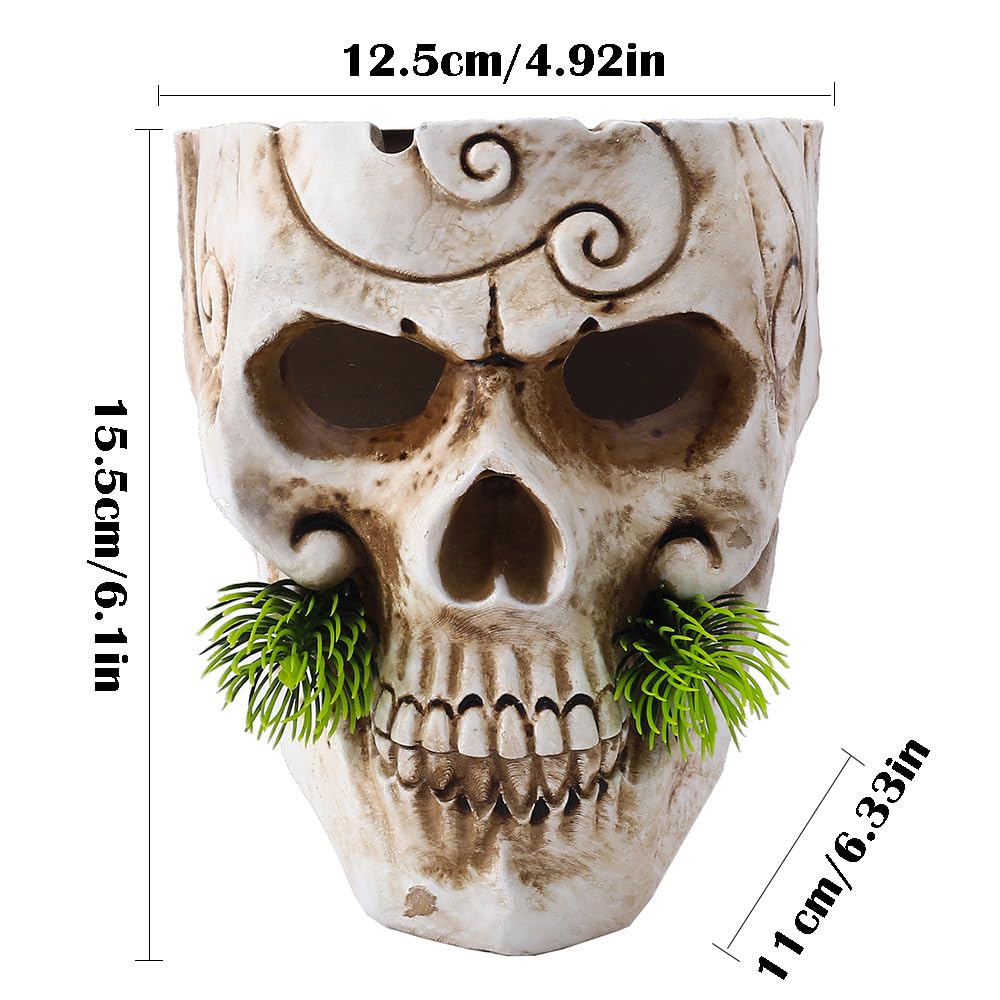 ¡Qué pasa! Esta maceta con forma de calavera es ideal si te gusta la decoración alternativa. Está hecha de resina resistente, mide 16,5 x 11 cm y pesa unos 660 g. La puedes usar para plantar suculentas, cactus o incluso para guardar chuches, bolígrafos o lo que se te ocurra. El diseño es detallado y realista, perfecto para Halloween, fiestas de terror o simplemente para darle un toque diferente a tu habitación. Es blanca, así que combina con casi todo, y aguanta bien tanto dentro como fuera de casa. Además, es un regalo genial para amigos con gustos peculiares. Eso sí, no es comestible, obvio. ¡Anímate a darle un aire único a tu espacio!