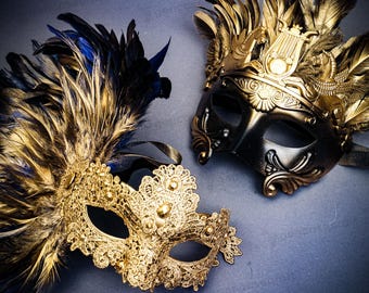 Máscaras De Mascarada Con Plumas Para Pareja - Estilo Veneciano Para Fiestas, Halloween Y Carnaval