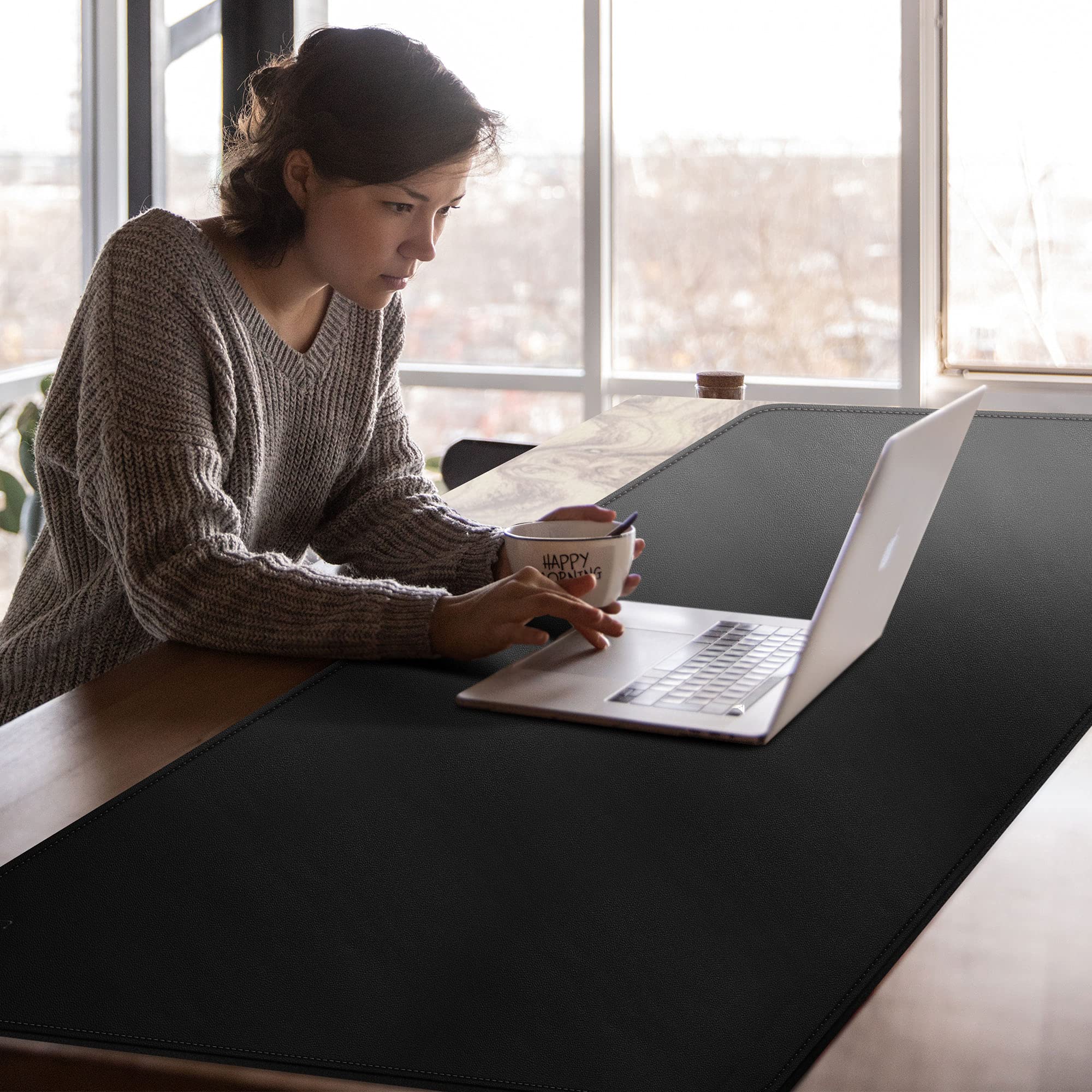 ¿Quieres proteger tu escritorio de rayones, manchas y polvo, además de tener una superficie cómoda para trabajar? Esta alfombrilla grande es perfecta. Mide 24 x 13 pulgadas (unos 60 x 33 cm), así que da para colocar tu portátil, teclado, ratón y otros accesorios de oficina. Tiene doble cara: un lado es de cuero PU, que es impermeable, resistente a las manchas de aceite y fácil de limpiar; el otro lado es de gamuza suave, que es cálido y antideslizante. Puedes usar el lado de cuero en verano para una sensación fresca, y el de gamuza en invierno para más calidez. El grosor es de 2 mm, suficiente para amortiguar y proteger sin ser voluminosa. El color naranja le da un toque vibrante y moderno a tu espacio de trabajo. Es ideal para la oficina, el estudio en casa o cualquier mesa que quieras mantener en buen estado. ¡Combina funcionalidad, protección y estilo!