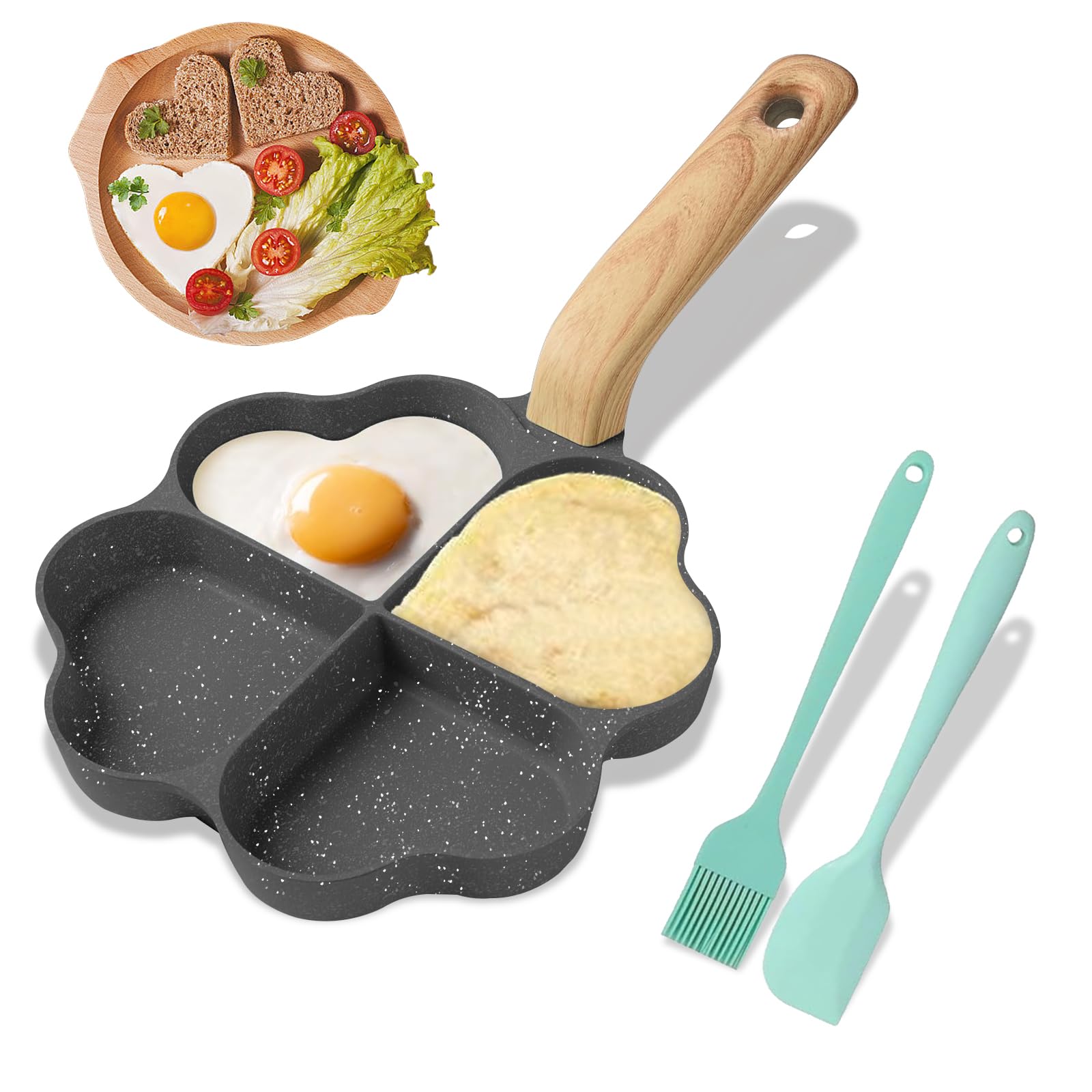 Sartén Desayuno Divertido Sartén Para 4 Huevos Con Moldes De Corazón Y Estrella - Antiadherente, Para Cocina E Inducción, 18 Cm, Mango Desmontable Sartén Huevos Moldes Formas