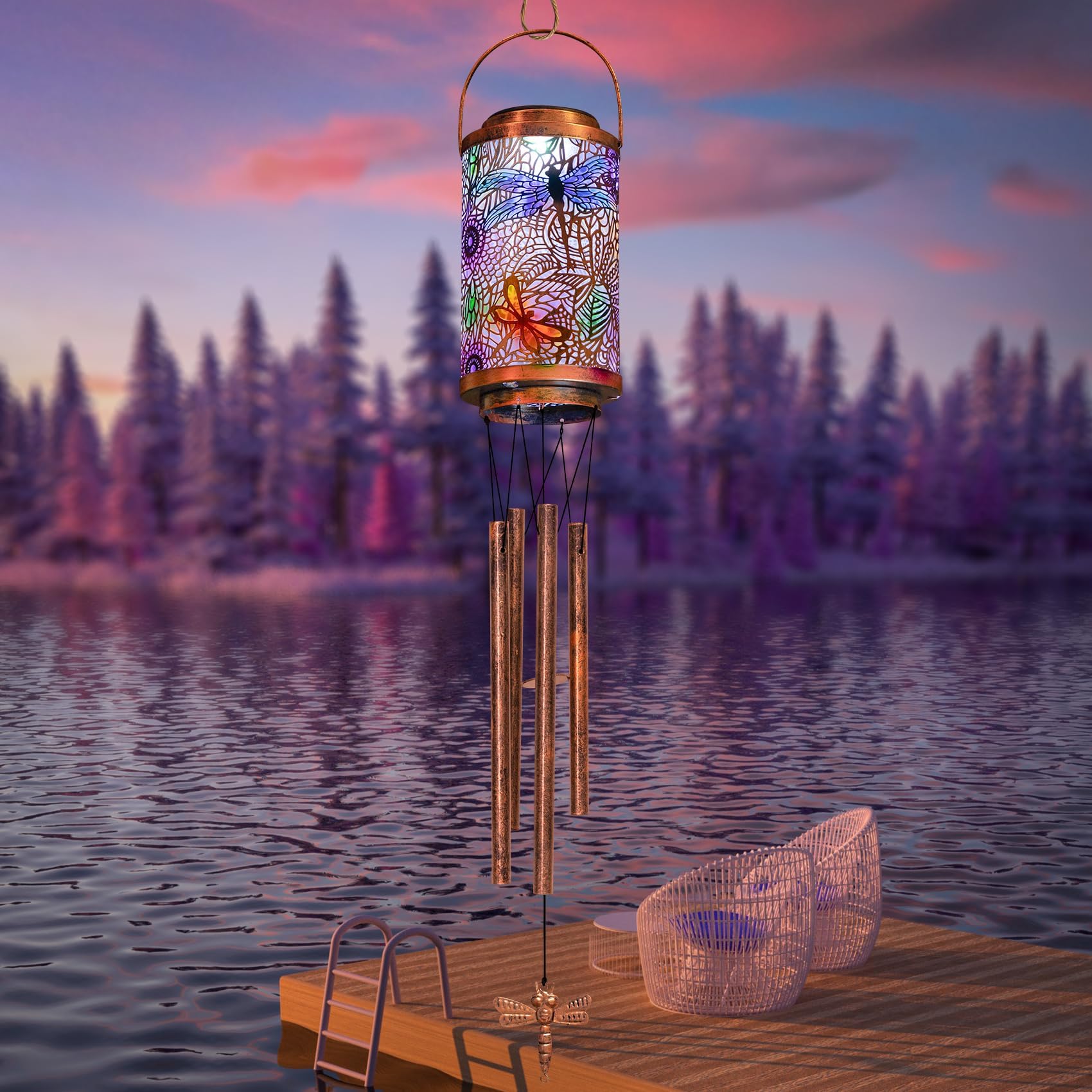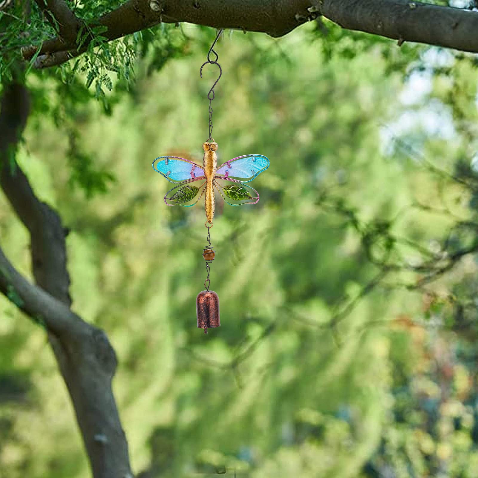 Estas campanillas de viento con forma de libélula son preciosas. Están hechas de hierro y discos de vidrio que tintinean suavemente con el viento, creando un ambiente relajante. Miden unos 56 cm de largo y los colores son vivos. Son resistentes a la intemperie, así que puedes colgarlas en el patio, jardín, balcón o incluso dentro de casa en una ventana. Quedan genial y le dan un toque especial a cualquier rincón. Ideal como regalo para amantes de la decoración o para ti mismo si quieres alegrar tu espacio exterior. ¡Suena y se ve fenomenal!